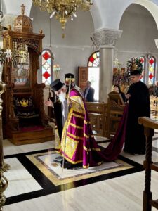 Κατά την διάρκεια της ακολουθίας, ο Θεοφιλέστατος ανέγνωσε με συγκίνηση το Πατριαρχικό Αναστάσιμο Μήνυμα της Α.Θ. Παναγιότητος του Οικουμενικού Πατριάρχου κ.κ. Βαρθολομαίου, μεταφέροντας τις πατρικές ευχές και ευλογίες του Οικουμενικού μας Θρόνου προς το ευλογημένο πλήρωμα της Ενορίας και την τοπική Εκκλησία.