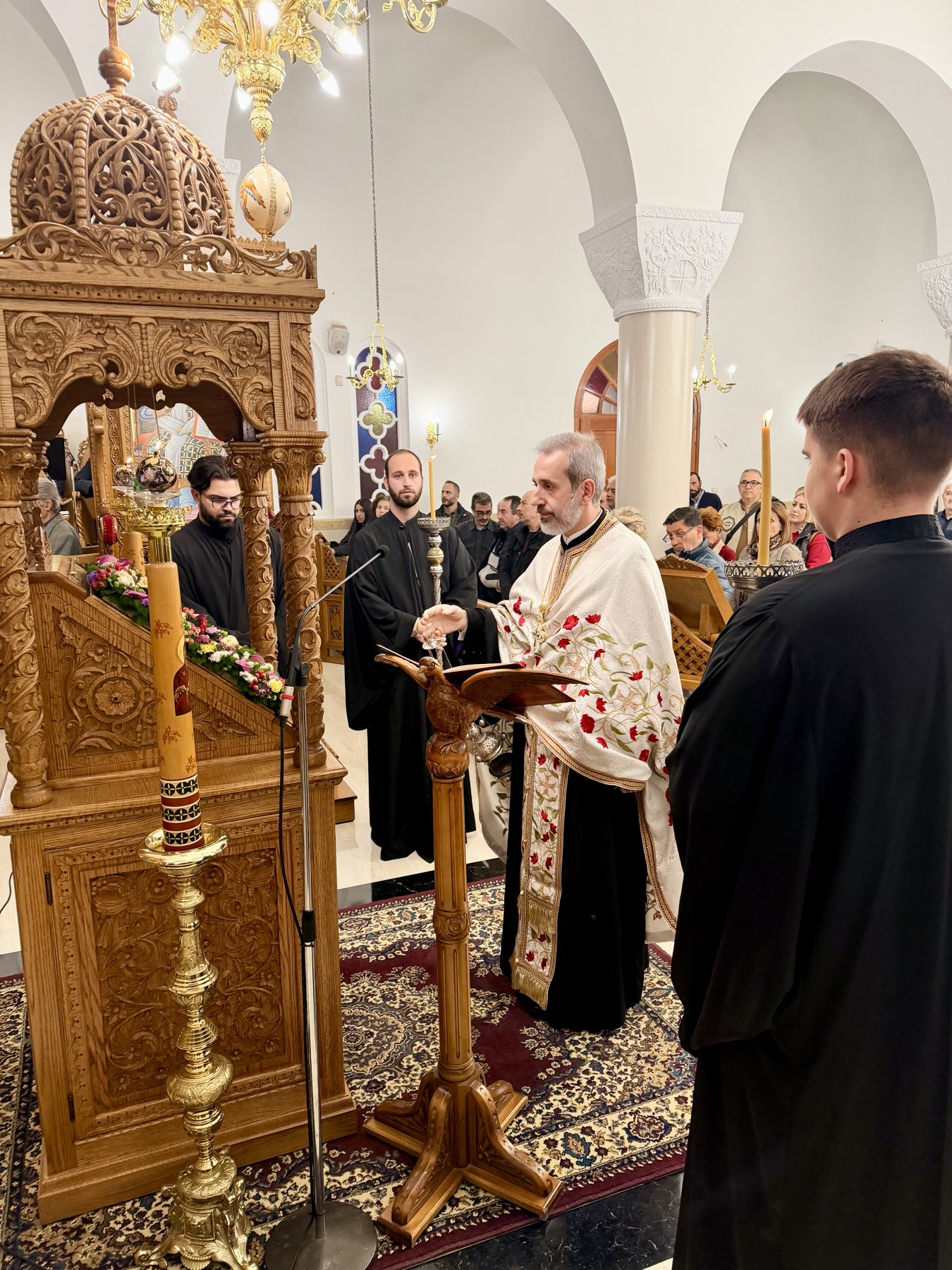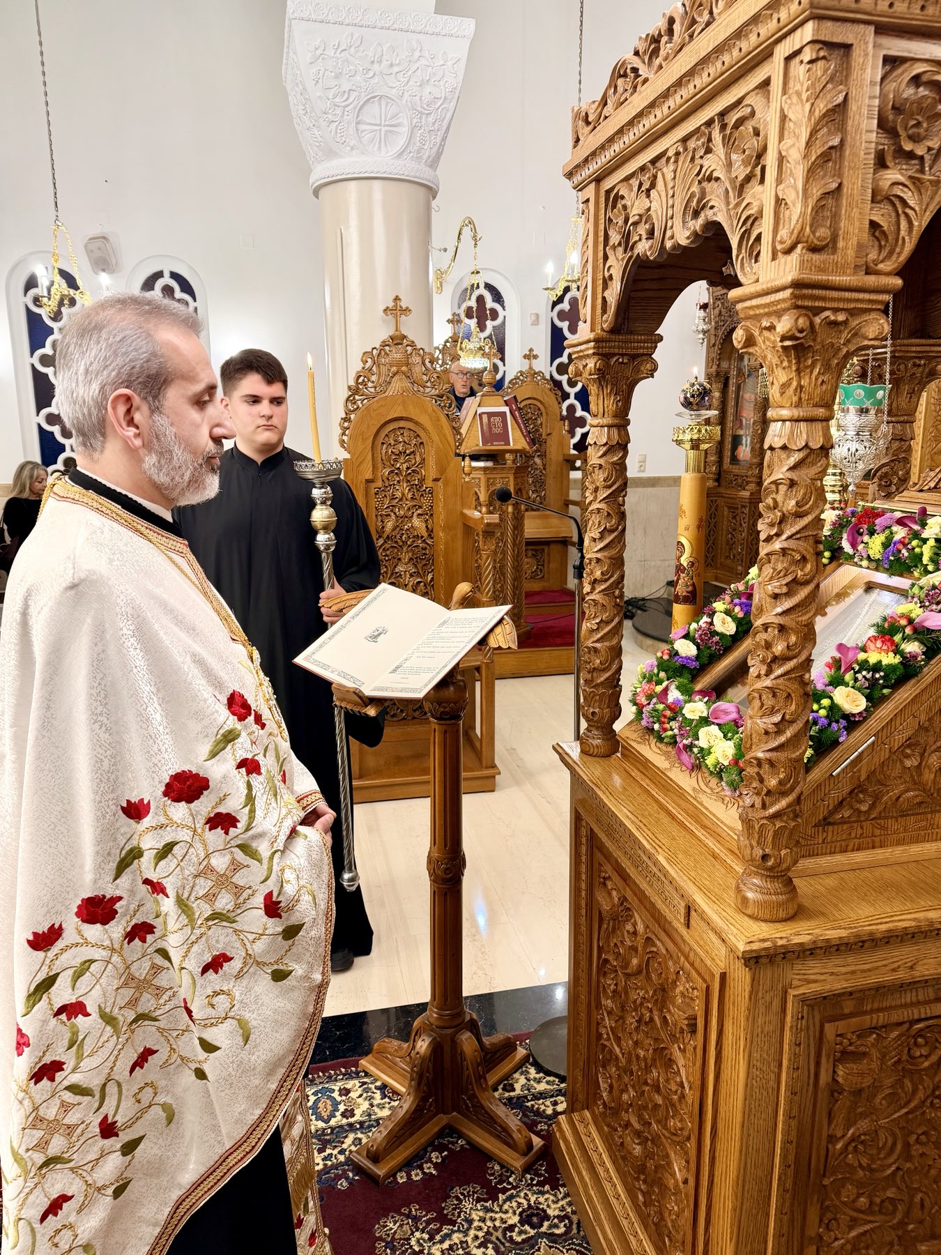 Την ιερά ακολουθία τέλεσε ο αιδεσιμολογιωτατος π. Γεώργιος Αρχοντάκης, προϊστάμενος του Ιερού Ναού της του Θεού Σοφίας Νέων Κλαζομενών, ο οποίος προεξήρχε της λατρευτικής συνάξεως και συμπροσευχήθηκε μετά του ευσεβούς εκκλησιάσματος.