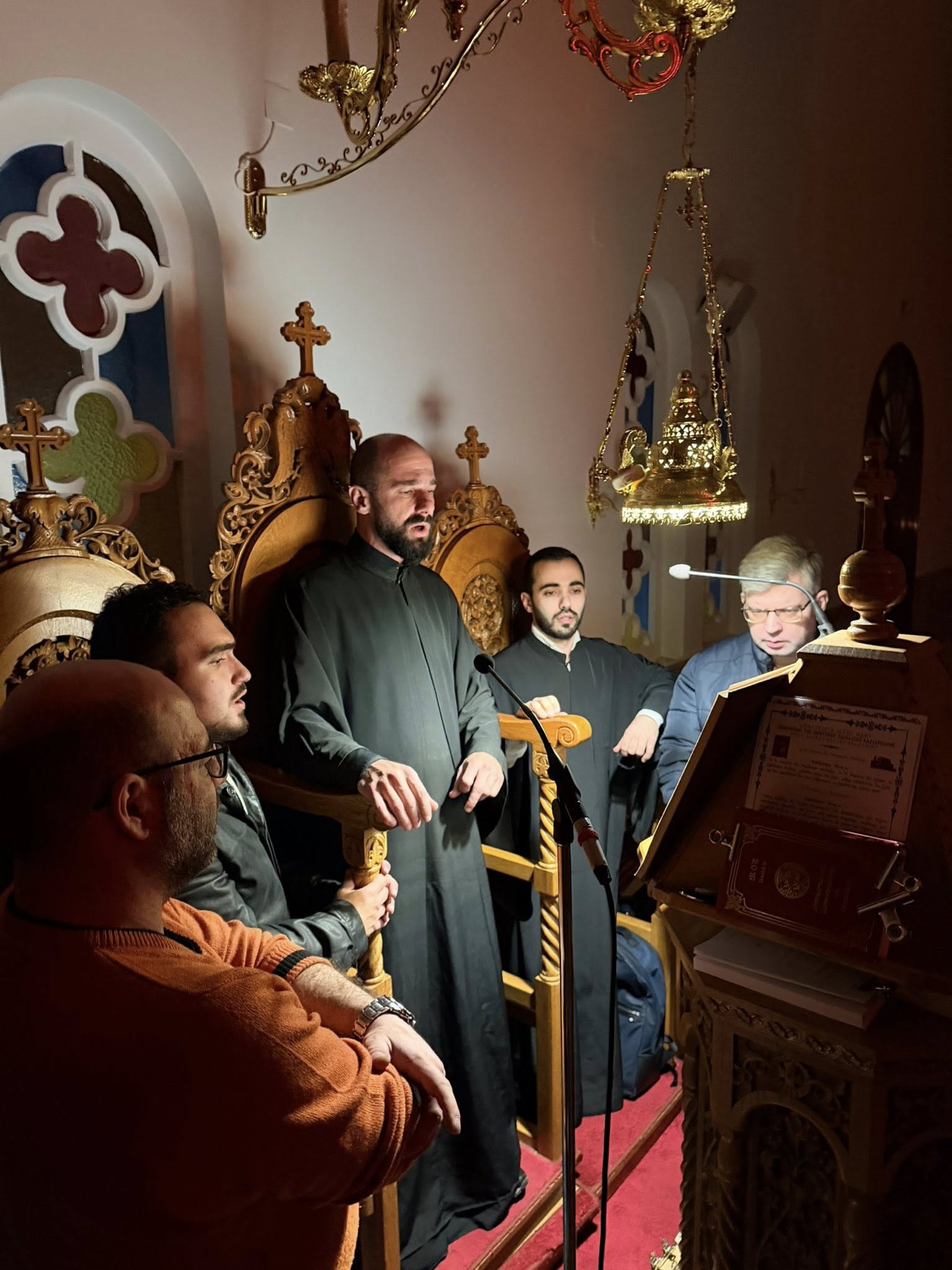 Ιδιαιτέρως εκφράζουμε τον υιϊκό μας σεβασμό και τις ειλικρινείς ευχαριστίες μας προς τον Σεβασμιώτατο Αρχιεπίσκοπο Κρήτης κ. Ευγένιο, ο οποίος με την πατρική του παρουσία και τη συμπροσευχή του ευλόγησε την ιερά σύναξη, ενισχύοντας πνευματικά τον κλήρο και τον λαό και επισφραγίζοντας την ενότητα και την αγάπη της τοπικής μας Εκκλησίας. Ξεχωριστές ευχαριστίες απευθύνουμε στον ιεροψάλτη της ενορίας μας κ. Χριστοφόρο Αλεβυζάκη, καθώς και στους χορωδούς, για την υποδειγματική, κατανυκτική και υψηλής ποιότητος ψαλμωδία τους, η οποία συνέβαλε καθοριστικά στην ιεροπρέπεια και τη μυσταγωγία της Ιεράς Αγρυπνίας, ανυψώνοντας τις καρδιές όλων προς τον Θεό.