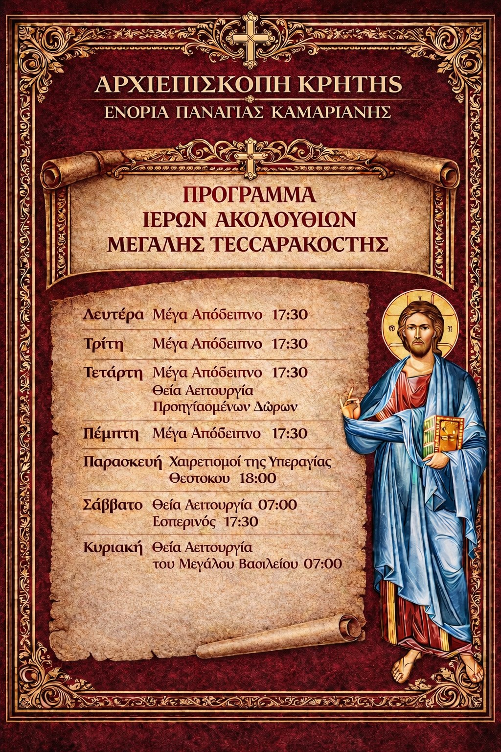 Η Μεγάλη Τεσσαρακοστή δεν είναι απλώς περίοδος αποχής από τροφές, αλλά κυρίως ευκαιρία εσωτερικής μεταμόρφωσης, συγχωρήσεως και πνευματικής εγρήγορσης. Με ταπείνωση και πίστη πορευόμαστε προς το Πάσχα, προσδοκώντας το ανέσπερο φως της Αναστάσεως.