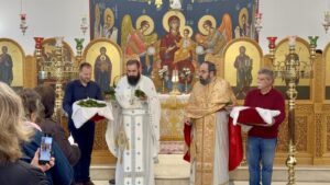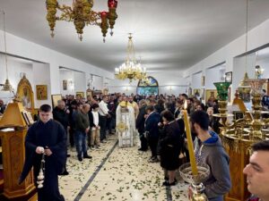 Της Ιεράς Ακολουθίας προεξήρχε ο Πανοσιολογιώτατος αρχιμανδρίτης Π Δημήτριος Πολιτακης ιεροκυρηκας της Ιερας Αρχιεπισκοπής Κρήτης ο οποίος ευχήθηκε στους πιστούς η χαρά της Αναστάσεως να γεμίσει τις καρδιές όλων και να αναστήσει κάθε ελπίδα και φως μέσα στη ζωή μας.